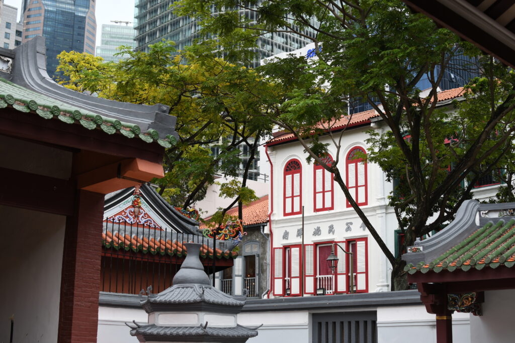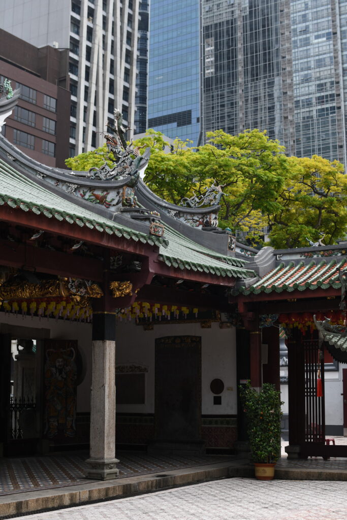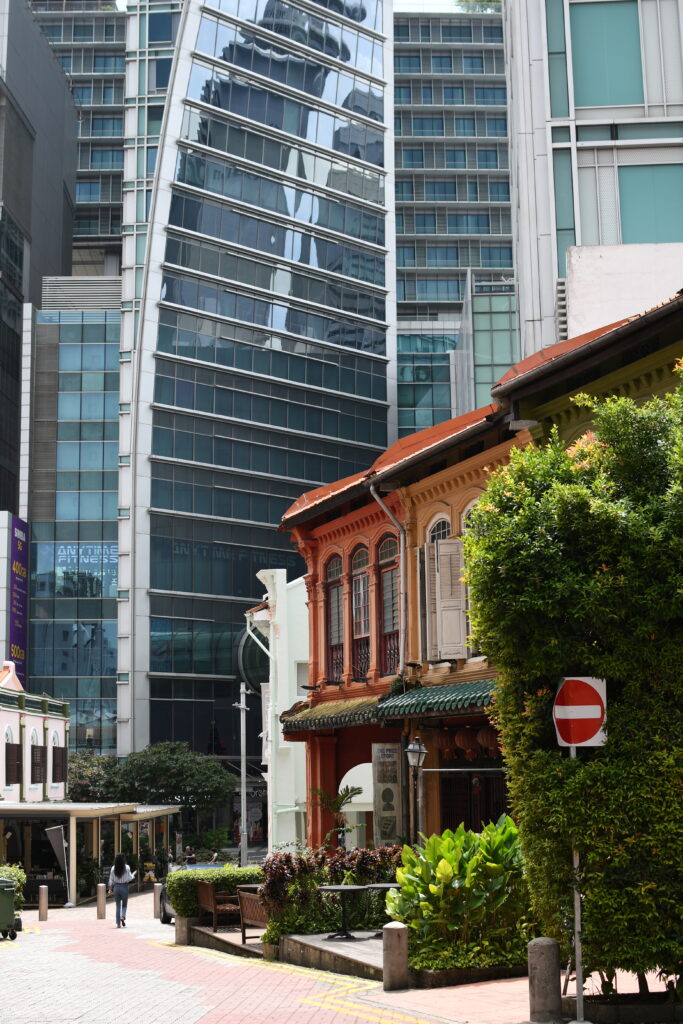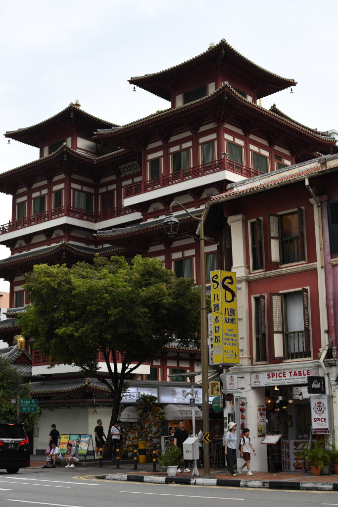 Passing through the towering bank buildings, you’ll enter Chinatown. Singapore’s population is predominantly Chinese, making up about 74% as of 2025. I found it spectacular to see gorgeous Chinese temples nestled among The Wolf of Wall Street like office towers. To my astonishment, I found myself inside temples alongside neatly dressed business wo/men – me taking photos, while they paused for their lunch prayers.