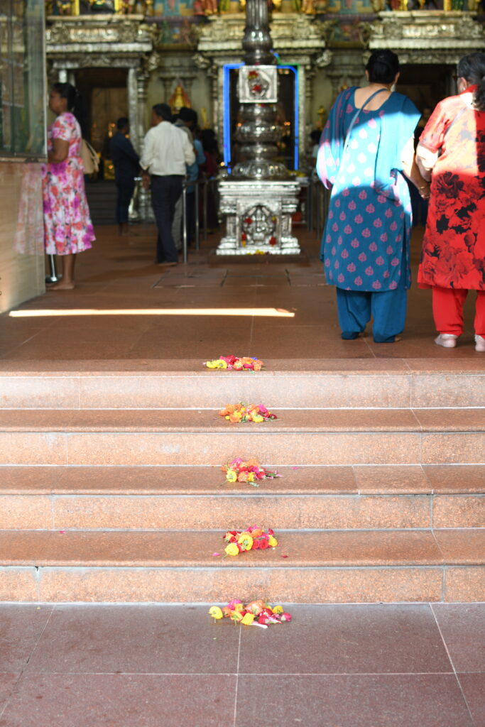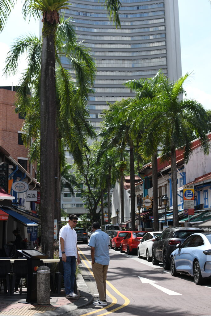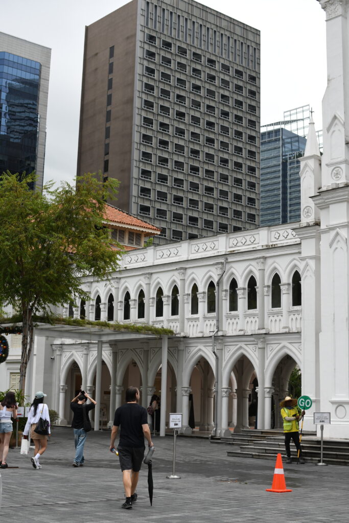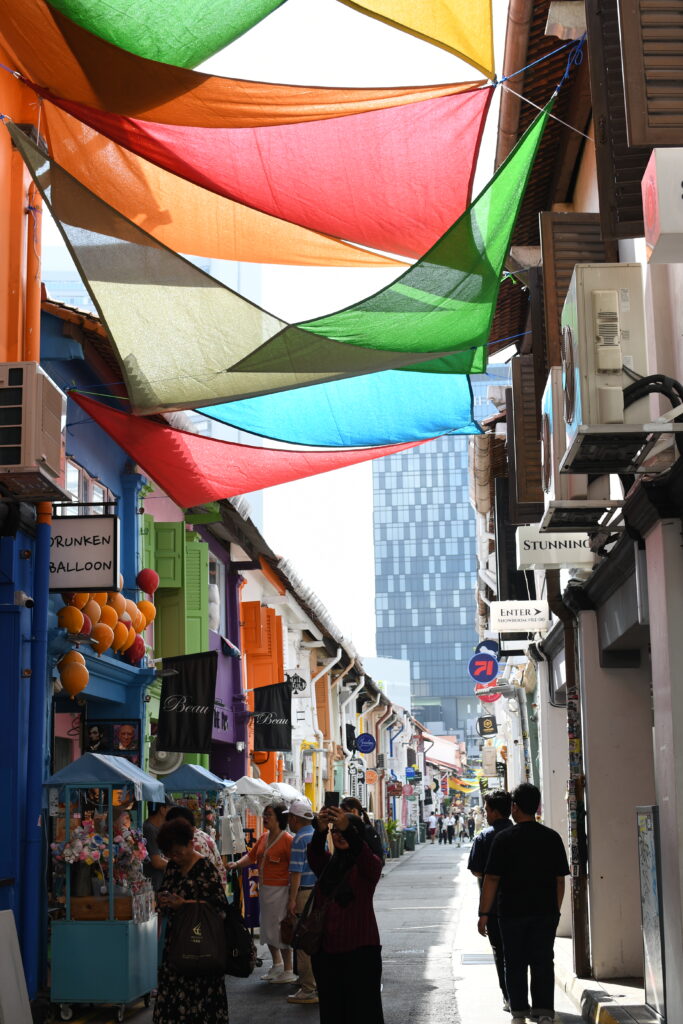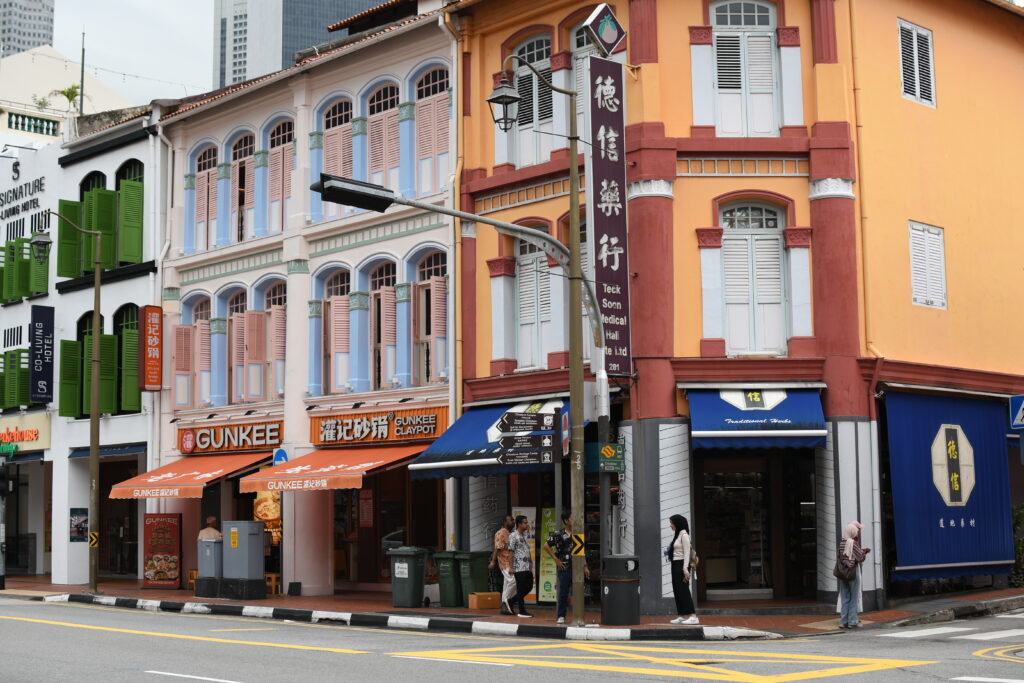 Passing through the towering bank buildings, you’ll enter Chinatown. Singapore’s population is predominantly Chinese, making up about 74% as of 2025. I found it spectacular to see gorgeous Chinese temples nestled among The Wolf of Wall Street like office towers. To my astonishment, I found myself inside temples alongside neatly dressed business wo/men – me taking photos, while they paused for their lunch prayers.